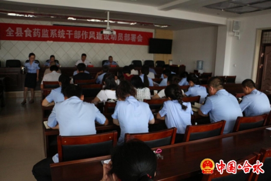 省食药监系统干部作风建设动员部署视频会及全市食药监系统干部作风建设动员部署视频会议召开后,合水县食品药品监督管理局高度重视,认真贯彻落实会议精神,立即召开了全系统干部作风建设动员部署会,乡镇食药监所负责人、直属单位及机关各股室干部职工共36人参加了会议。