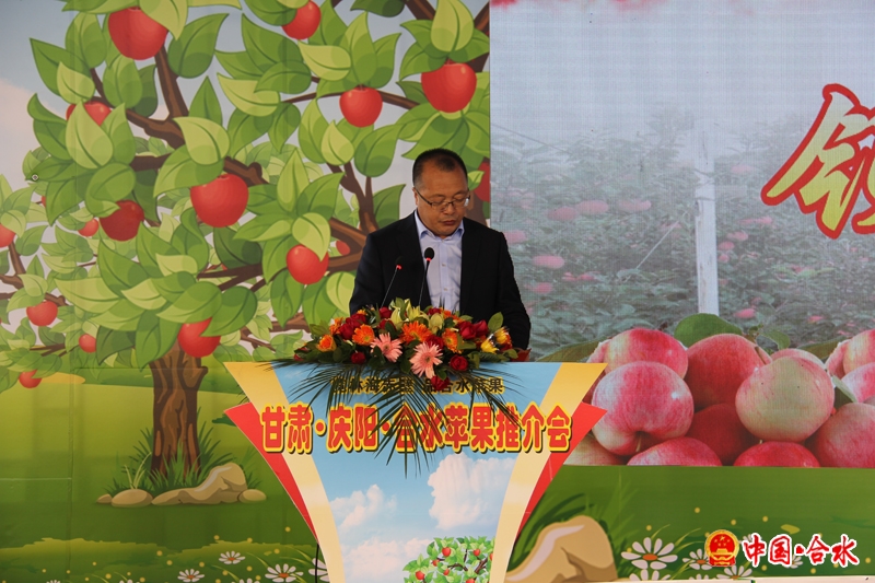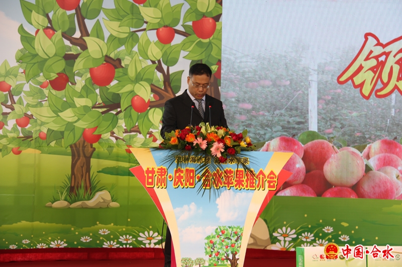 县长刘小宁代表中共合水县委、县政府致辞,在全面介绍了合水县情后,他说,合水县独特的自然气候条件所产的苹果以形正、个大、色艳、质脆、味香、含糖量高、绿色无公害、耐贮运而久享盛誉,举办这次推介会的目的就是广泛宣传庆阳苹果品牌,集中推介合水苹果产品,继续提高庆阳苹果的知名度和影响力,积极拓展合水苹果的营销渠道和市场空间,全面提升合水县人民群众的增收水平。热忱欢迎广东各界朋友来合水考察洽谈、投资兴业。同时也真诚希望各位来宾对我县果品产业发展提出宝贵意见建议。希望新闻界朋友继续关注庆阳合水、宣传庆阳合水,为合水果业发展乃至经济社会发展提升正能量,增添新活力。