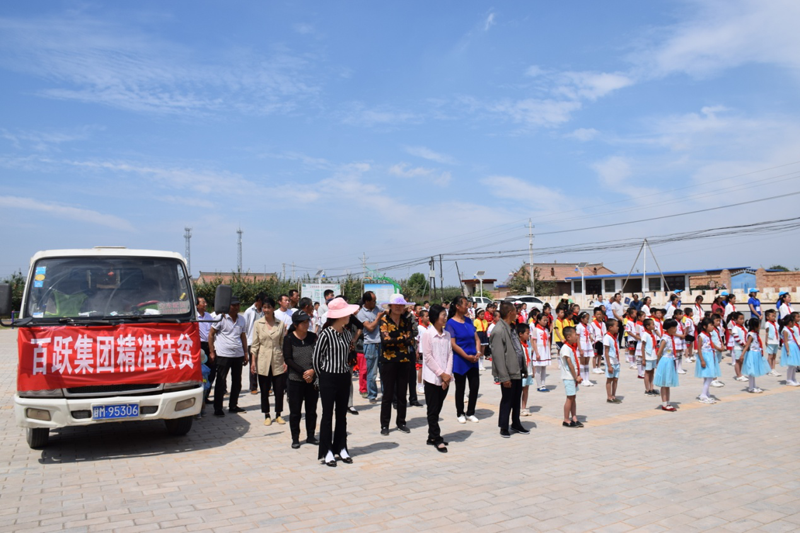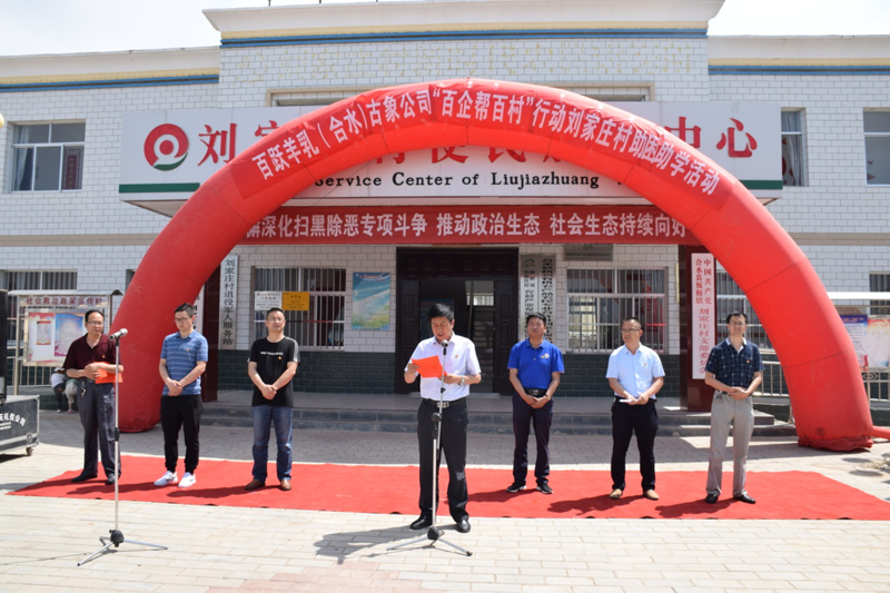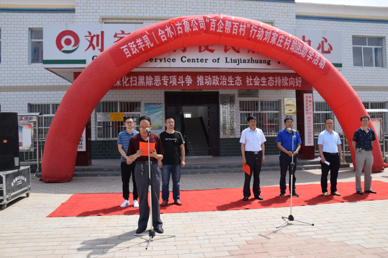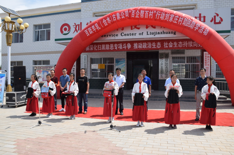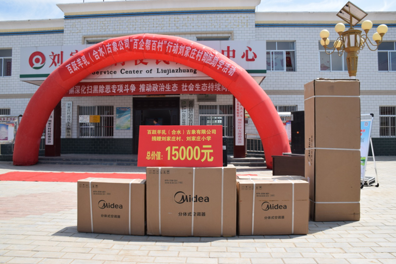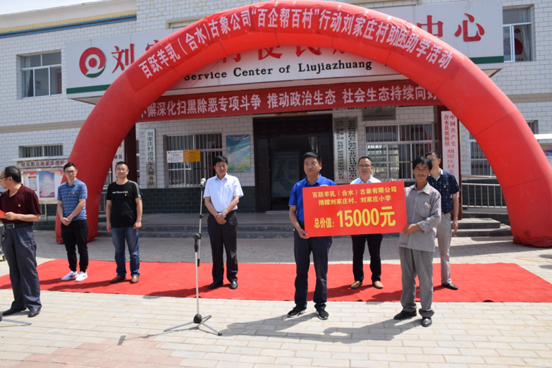 6月18日,合水县委统战部、县工商联携手百跃羊乳(合水)古象公司深入板桥镇刘家庄村开展“百企帮百村”精准扶贫助困助学活动,为刘家庄村和刘家庄小学捐赠了价值1.5万元的生活、办公和学习用品。