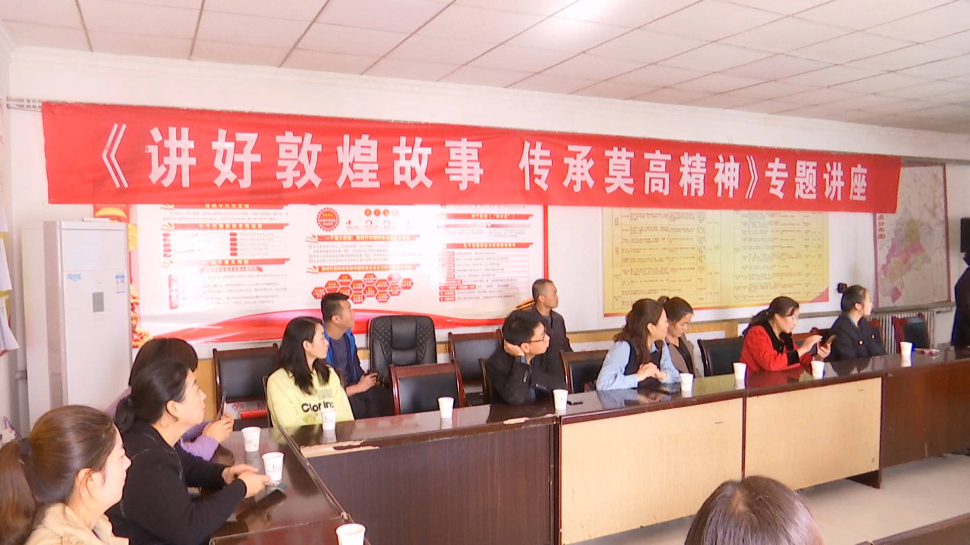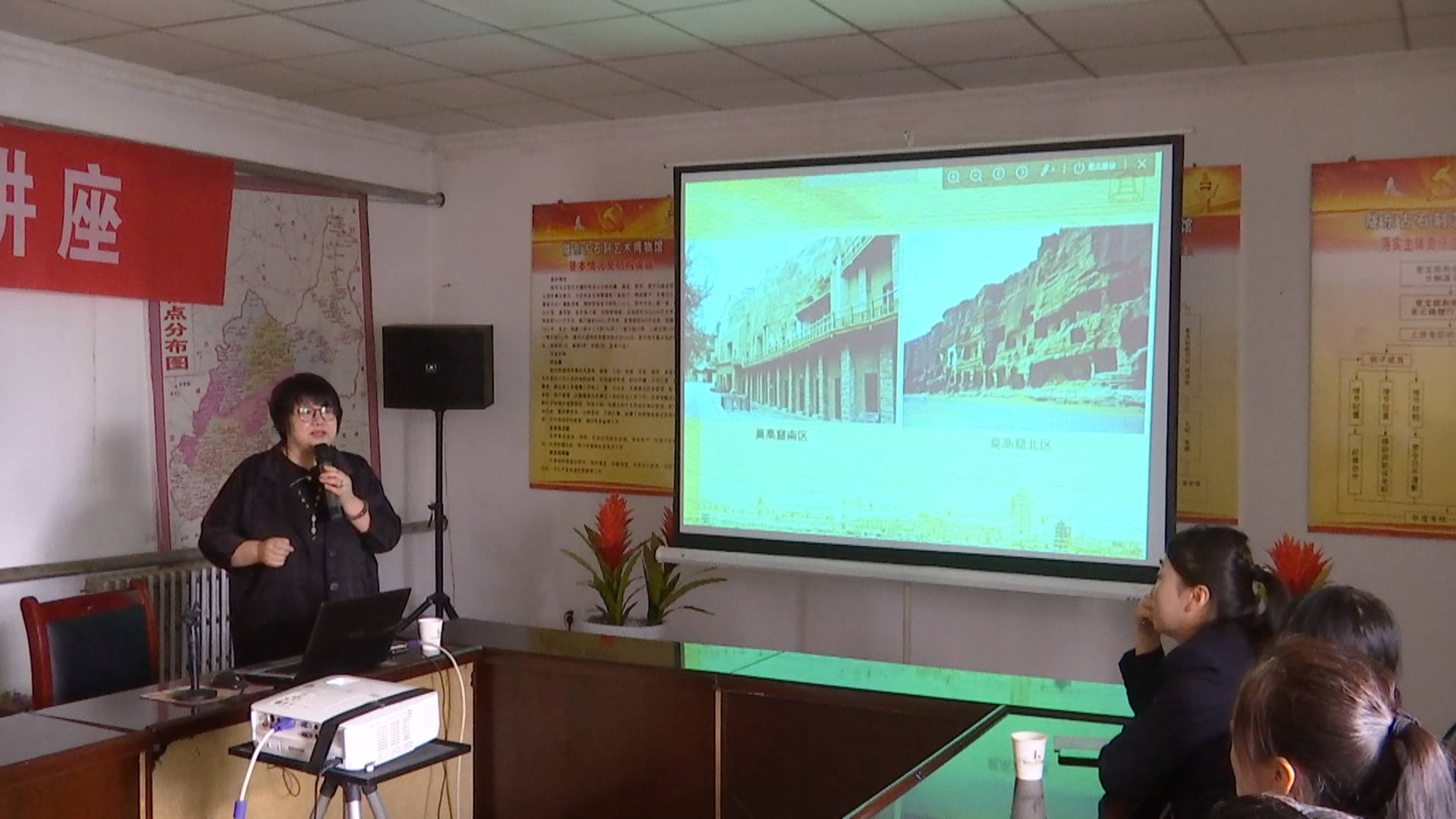 展览中,敦煌研究院陈展部讲解员为观众讲解了“飞天神韵 莫高精神—敦煌石窟文化艺术展”的展览内容;随后,敦煌研究院考古研究所副研究员马兆明在陇东古石刻艺术博物馆二楼会议室作了以《讲好敦煌故事 传承莫高精神》为主题的专题讲座,为公众深度解析“莫高精神”。