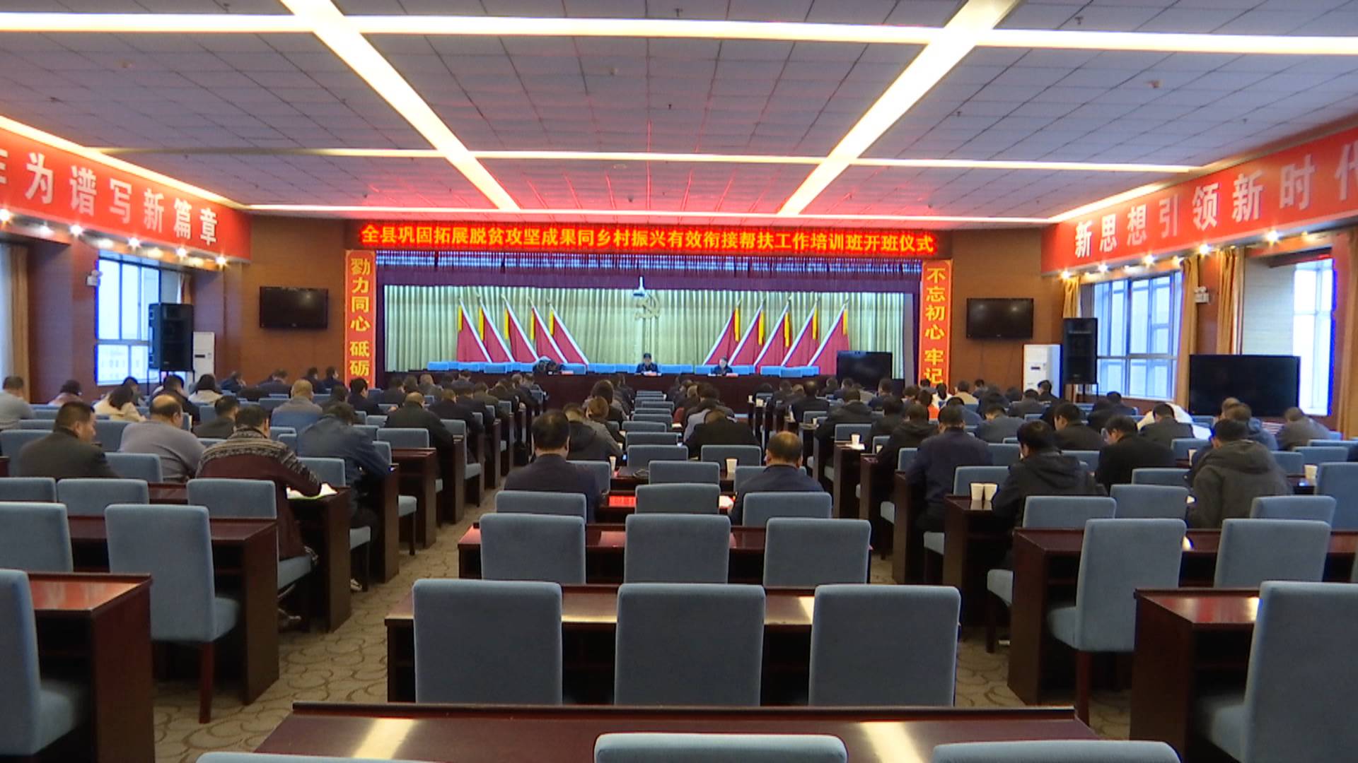 县委常委、组织部部长戴斌出席仪式并讲话,县委常委、副县长武婷主持仪式。各乡镇驻村帮扶工作总队长,已退出贫困村各驻村帮扶工作队全体成员参加培训班。