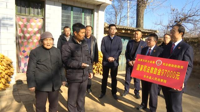 12月20日,合水县人民检察院检察长曹建梓一行深入肖咀镇铁赵村,为道路交通案件受害人家属刘某送去司法救助金97000元。
