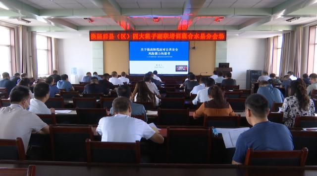 6月23日,庆阳市委书记黄泽元在为全市换届后县(区)四大班子副职培训班学员作专题辅导时强调,要熟悉应急预案、工作流程和防范措施,全面提高防范应对风险能力,建立权威高效统一指挥体系,最大限度降低人民群众生命财产损失,切实保障全市经济社会高质量发展。合水县组织人员在分会场集中参加了培训班。