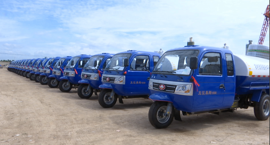 仪式上,县乡村振兴局为全县12个乡镇发放61辆吸污车,并现场进行