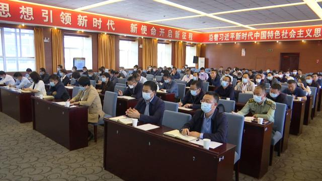 县委副书记郭丽君主持报告会并讲话,全体在家县级领导、各乡镇党委书记、县委各部委、县直相关部门主要负责人参加会议。