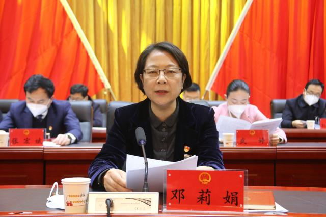 邓莉娟强调,要聚焦职能定位,以更优效能提升履职水平。县乡人大要牢牢把握“四个机关”定位,加强自身建设,提升履职本领。要深入贯彻习近平总书记关于坚持和完善人民代表大会制度的重要思想,认真履行法定职权,深入开展调查研究,畅通民意反映渠道,发展全过程人民民主,保障人民的知情权、参与权、表达权、监督权。要认真实施宪法,依法做好决定、任免、备案审查、执法检查等工作,加强司法监督和普法教育,推进全面依法治县,确保行政权、监察权、审判权、检察权正确行使。要践行为民宗旨,完善代表履职保障机制,组织好代表活动,办理好代表议案和意见建议,最大限度吸纳民意、汇集民智。人大代表要充分发挥植根人民的优势,加强党的路线方针政策宣传,多做释疑解惑、疏导情绪、化解矛盾、增进理解的工作,带头落实县委、县政府部署,主动帮助解决群众在就业、上学、就医、养老、社保等方面的困难和问题,做到对人民负责、为人民代言。要锤炼过硬作风,以更浓情怀树好为民形象。各级人大、全体人大代表和“一府一委两院”要坚守为国履职、为民尽责的情怀,强化担当实干、争先进位的意识,始终牢记肩上有担、心中有责,坚守人民至上,树牢群众观念,厚植为民情怀,坚持在发展中保障和改善民生,不断增进人民群众获得感幸福感安全感。要倡导求真务实、担当实干、雷厉风行、事不过夜的优良作风,深入一线、干在实处,解放思想、拓宽视野、打开格局,在急难险重任务和重大风险考验中彰显新作为、展现新风采。