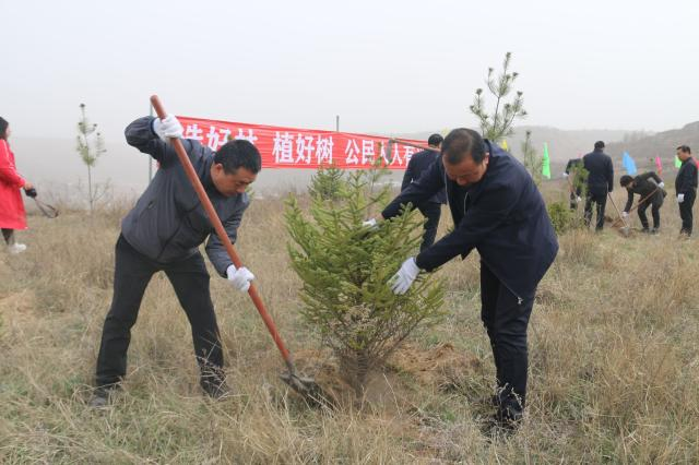 上午九时,邓莉娟,陈会发,戴斌等在家县级领导与全县干部职工来到西华池镇孙家寨沟村朱家咀义务植树点,参加植树活动。大家挥锹铲土、分组合作,放苗、扶正、培土、压实、浇水,衔接有序,配合默契,经过一番忙碌,一棵棵新栽种的树苗在阳光下焕发出勃勃生机,为美丽合水增添了无限活力,全县广大干部职工以实际行动守护绿水青山,为城乡生态文明建设保驾护航。