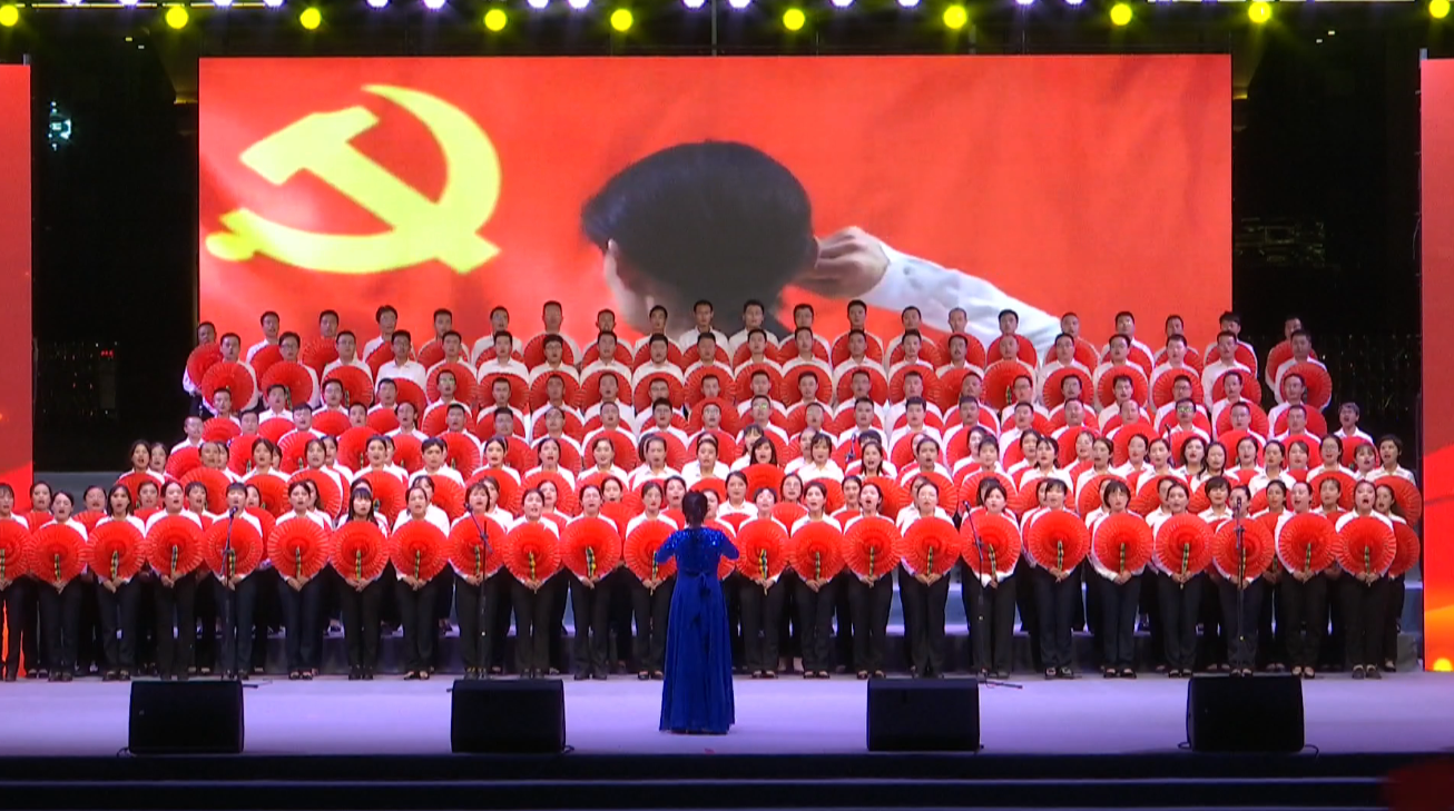 20点整,县委书记邓莉娟,县委副书记、县长陈会发,县人大常委会主任戴斌、县政协主席何维莉等全体在家县级领导与党群口广大干部职工共同合唱了《不忘初心》《走向复兴》,庆祝中国共产党成立102周年干部职工合唱比赛正式拉开帷幕。