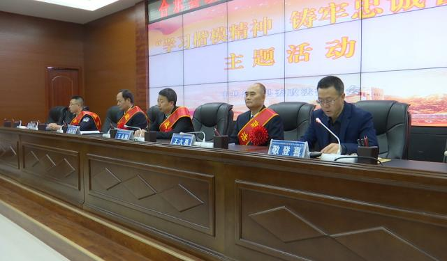 在政法系统掀起学习先进、崇尚先进、争当先进的热潮。县委政法委牵头组织,选树王大勇、王永刚、白开龙、高振华4名政法楷模,举办全县政法系统先进事迹宣讲报告会,以楷模精神激励引导广大政法干警忠诚履职、担当作为。政法各单位组织开展“英模典型事迹”宣讲进企业、进校园、进社区系列宣传活动12场次,观看《八步沙》《高铁作证》等影片2次,撰写心得体会63篇。