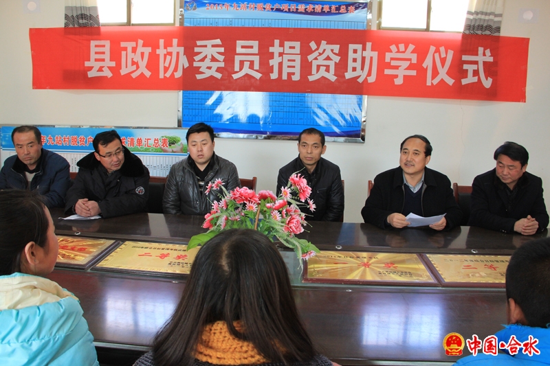 近年来,县政协高度关注家庭贫困学生的上学问题,积极联系广大委员和社会各界人士,慷慨解囊,捐资助学,解决了部分贫困学生上学难的问题。在此次资助贫困大学生活动中,县政协委员、甘肃科进集团公司总经理李佳捐资6000元资助了3名贫困学生,县政协委员、合水县怡露水业有限责任公司董事长杨宏斌捐资4000元资助了2名贫困学生。