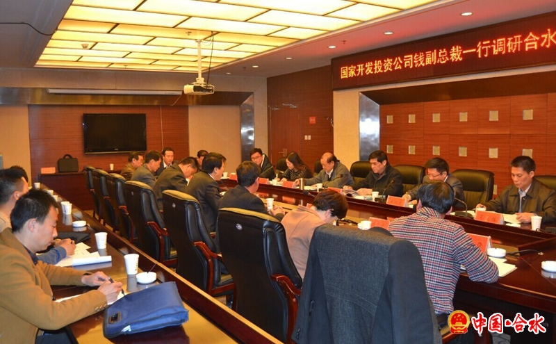 晚上,在县宾馆2楼会议室召开了座谈会,会议由县委副书记、县长沈文祥主持,县委副书记苏统亨出席会议并汇报了我县精准扶贫工作开展情况及群众脱贫致富存在的困难,县扶贫办、交通局、果业局、 蔬菜办、合水县振海塑业有限责任公司、合水县天顺果品有限责任公司相关负责人参加会议并进行发言。钱蒙向与会人员介绍了国家开发投资公司的投资方向及在全国开展扶贫帮扶情况。并对我县高度的扶贫决心、有效的扶贫路子给予充分肯定,认为我县善于瞄准精准扶贫的“滴灌口”,敢于突破精准扶贫的瓶颈制约,工作开展扎实有效,增强了贫困群众的内生动力,加快了脱贫致富的步伐,真正做到了“扶真贫、真扶贫”。钱蒙指出,扶贫工作是公司履行社会责任的一项重要任务,也是公司应尽的责任,国家开发投资公司将会一如既往的支持合水县群众脱贫致富,愿积极与合水县扶贫办加强沟通配合,在全县范围内选择一些效益好、发展前景广阔、带动就业强的公司进行投资,帮助企业发展壮大,为我县经济发展、农民持续增收尽一份力。沈文祥对国家开发投资公司长期以来给予我县的大力扶持表示衷心的感谢。并表示合水县委、县政府将积极与贵公司加强配合,积极为国家开发投资公司遴选好项目。沈文祥还表示,合水县将切实把心思和精力放到发展上来,把脱贫攻坚作为振兴发展的重大民生工程。不断创新精准扶贫工作模式,主动探索产业扶持、项目带动、大户带动等新型扶贫方式,转变群众传统观念,调动群众积极性,不断提升贫困群众的致富能力。 国家开发投资公司(简称“国投”)成立于1995年5月5日,是国务院批准设立的国家投资控股公司和中央直接管理的国有重要骨干企业之一。国投注册资本194.7亿元,资产总额3115亿元,员工8万多人。该公司累计投入我县帮扶资金685万元,开辟了瓦岗川贫困片带砂石路1条12公里,老城镇水沟村砂石道路1条4.2公里;在合水第一中资助高中自强班2个,资助学生100名,捐赠电脑37台件;两节慰问贫困户800户;为我县最贫困乡镇蒿咀铺乡下派村第一书记1名。
