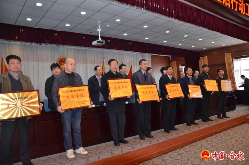 会上,县政府党组成员、政府办主任和鹏华宣读了《中共合水县委办公室、合水县人民政府办公室关于表彰奖励2015年度全县城乡环境综合整治工作先进单位和先进个人的决定》,主席台前排就坐的县级领导为先进单位和先进个人颁发了奖牌和荣誉证书;县政府党组成员刘小宁安排了全县农村工作;县委常委、政法委书记阎春涛安排了全县城乡环境综合整治工作。