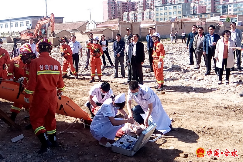 为进一步提高人民群众的防震减灾意识,最大限度的减轻地震灾害造成的损失,庆阳市以合水县发生6.5级地震为模拟事件,进行了全市抗震救灾应急救援综合演练,合水县公安、消防、民政、卫生等10多支救援队积极参加演练活动,市、县相关领导及各兄弟县区防震减灾部门的负责人观摩了演练全过程。