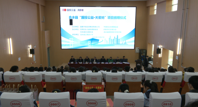 11月27日,“国投公益·关爱她”女童关爱项目捐赠仪式在合水县三里店小学举行。国家开发投资集团有限公司联合中国人权发展基金会、中国妇女发展基金会共同参与。县委常委、副县长高飞出席并致辞,副县长秦莹参加。