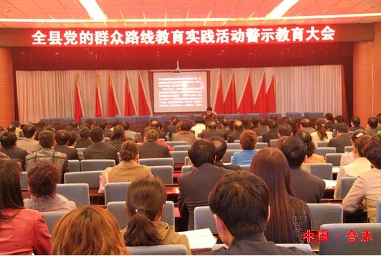 为深入开展党的群众路线教育实践活动,加强廉政警示教育,3月20日下午,合水县召开党的群众路线教育实践活动动警示教育大会。全体在家县级领导,各单位、各乡镇科级以上党员干部200多人在县宾馆五楼会议室观看了《苏联亡党亡国二十年祭》警示教育专题片。、