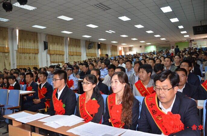 9月10日下午,县委、县政府召开全县教育工作暨第30个教师节庆祝大会。县委书记柴春,人大常委会主任谢守成,县委常委、宣传部长姚德学等县级领导出席会议。各乡镇党委书记或乡镇长,县直各部门主要负责人;全县所有中小学校长,教师代表,受表彰奖励的先进个人,新评选命名的教育名师、学科带头人;县教体局全体干部职工,共计450多人在合水一中报告厅参加会议。副县长李春焕主持会议。