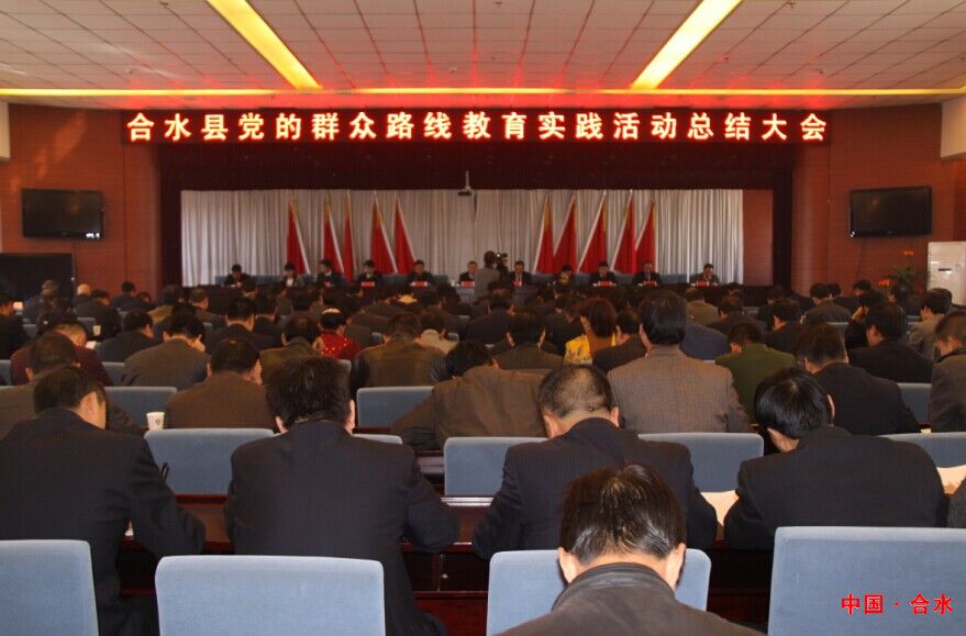 会议邀请市委第十八督导组全体成员参加,市政协副主席、市委第十八督导组组长刘晓利出席会议并讲话;县委书记、县委党的群众路线教育实践活动领导小组组长柴春作了总结讲话;县上“四大家”领导及全体县级干部;各乡镇党委书记、乡(镇)长、党委副书记;县直各部门、省市驻合各单位主要负责人、支部书记;县纪委副书记;市县党代会代表、离退休县级干部代表;民主党派、工商联负责人和无党派人士代表;县委各督导组第一副组长及县委活动办全体工作人员,共220人参加会议。县委副书记、县长沈文祥主持会议。