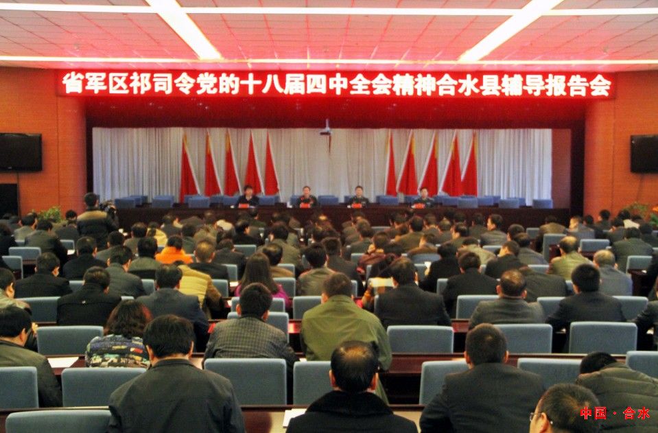 在全县上下深入学习贯彻党的十八届四中全会精神之际,11月24日,省军区副司令员祁学军专程来到我县,在县宾馆五楼会议室作了学习贯彻十八届四中全会精神专题辅导报告。