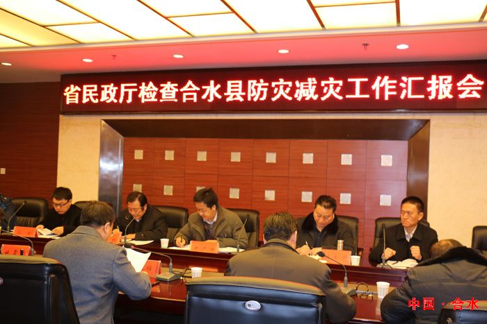 辛处长一行实地检查了我县吉岘乡罗家畔村、吉岘乡人民政府、固城乡人民政府、固城乡固城村以及县民政局、水务局、地震局救灾物资储备和防灾减灾预案、体系建设情况,同时召开了座谈会。会议由县政府副县长、减灾委主任李春焕主持,县民政局、水务局、气象局、卫生局等8个县减灾委相关成员单位参加。会上,县减灾委副主任、民政局局长赵紫辉就我县防灾减灾工作进行了全面汇报,辛处长对我县防灾减灾工作给予了充分肯定,他指出,合水县高度重视防灾减灾工作,全面落实《国家综合防灾减灾规划(2011-2015年)甘肃省实施方案》、《甘肃省综合防灾减灾责任体系的通知》、《关于切实加强和规范自然灾害救助工作的意见》等三个防灾减灾文件,尤其防灾减灾预案编制详细、操作性强,救灾资金运行规范,救灾物资、装备储备齐全,防灾减灾工作责任、措施到位。