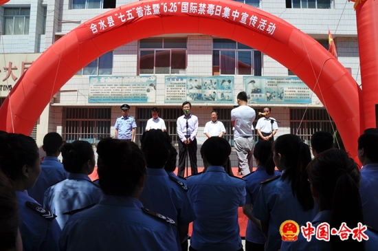 2017年6月26日,时值国际第30个禁毒日,为大力开展禁毒法治宣传,提高群众法治意识,并为推动“七五”普法工作营造浓厚氛围,县司法局、公安局联合组织开展了大型“七五”普法暨“6.26”国际禁毒日法治宣传活动。参加活动启动仪式的有县委常委、政法委书记、县禁毒委常务副主任王立三,县人大常委会副主任、县禁毒委副主任崔峰,县政协副主席、县禁毒委副主任王振乾,57个具有行政执法职能及普法任务的单位及禁毒委成员单位负责人、28名普法讲师团成员、23名法制副校长及县司法局、公安局工作人员共计130余人。