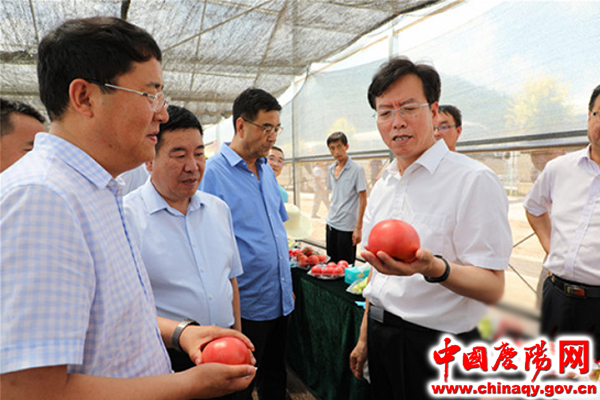 固城川万亩绿色蔬菜生产基地引进国外品种和江苏南通广蔬现代农业有限公司等企业,采取“企业(合作社)+基地+农户(贫困户)”和订单式种植的模式,种植各类蔬菜1万多亩,预计年实现产值3800万元以上,贫困户户均收入1.2万元。在果园和大棚内,向县乡负责人和技术人员详细了解产业效益和群众劳务收入情况后,贠建民指出,技术是农业供给侧结构性改革的关键,要加强与科研院校的联系,突出科技贡献率,全力提升农业产业化效益和水平。