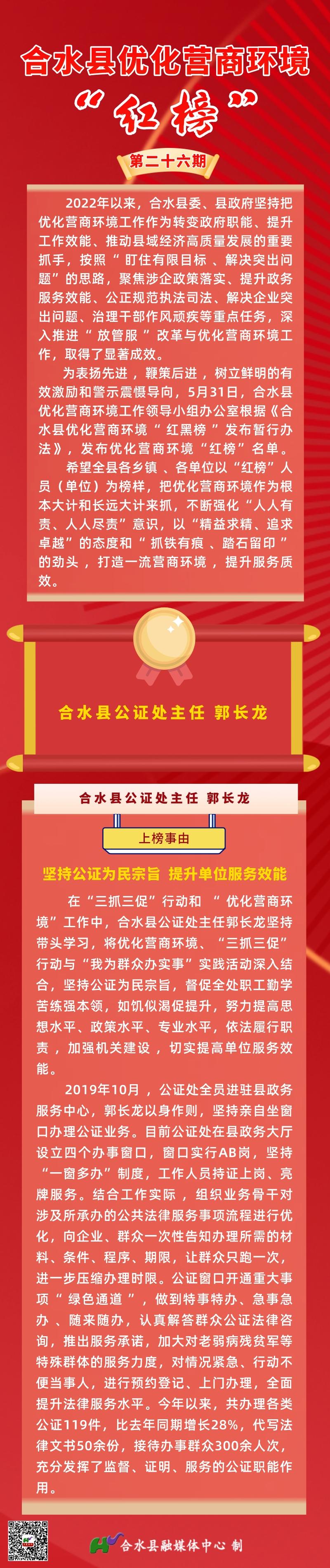 【长图】优化营商环境 推动高质量发展 | 合水县优化营商环境“红榜”第二十六期 来源:合水县融媒体中心 作者: 发布时间:2023-06-02 10:45:16 浏览次数: 次 【字体:小 大】 终审:李娟娟 【打印文章】 【关闭窗口】 分享到: