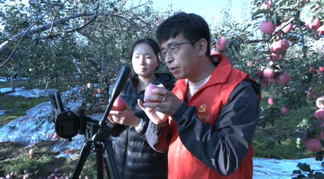 苹果产业是双柳树村的主导产业,全村果园面积达1500 亩。近期的连续降雨导致苹果滞收,为减少损失,村两委积极谋划,创新销售思路,通过 “线上 + 线下” 双渠道发力,一方面组织党员群众成立抢收队伍加快采收,另一方面让村里的直播团队走进果园实地带货,全力推动苹果销售。
