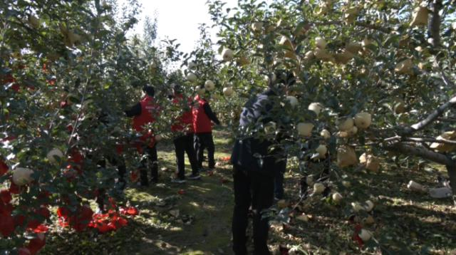 在店子乡双柳树村,抢收工作同样紧张有序地进行着。双柳树村不仅组建了专门的抢收队伍,加快采收进度,还充分利用直播带货的优势,开启“边采摘边销售” 模式,让新鲜的苹果第一时间直达消费者手中,切实保障果农收益。